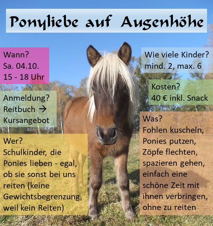Die Reittermine am Wochenende vormittags bleiben aber bestehen.